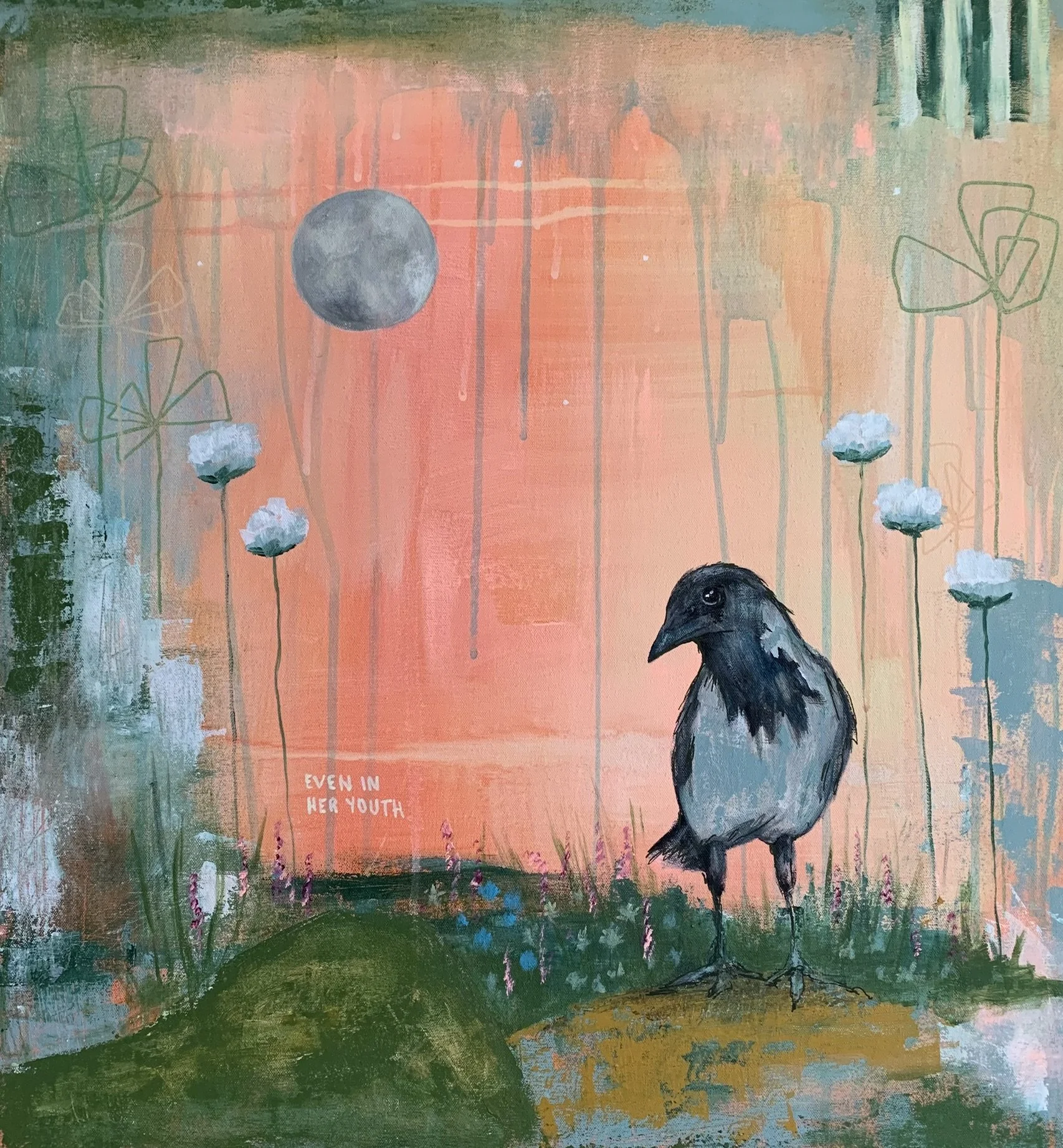 "Even in her youth" Mixed media on canvas, 2025 SOLD
